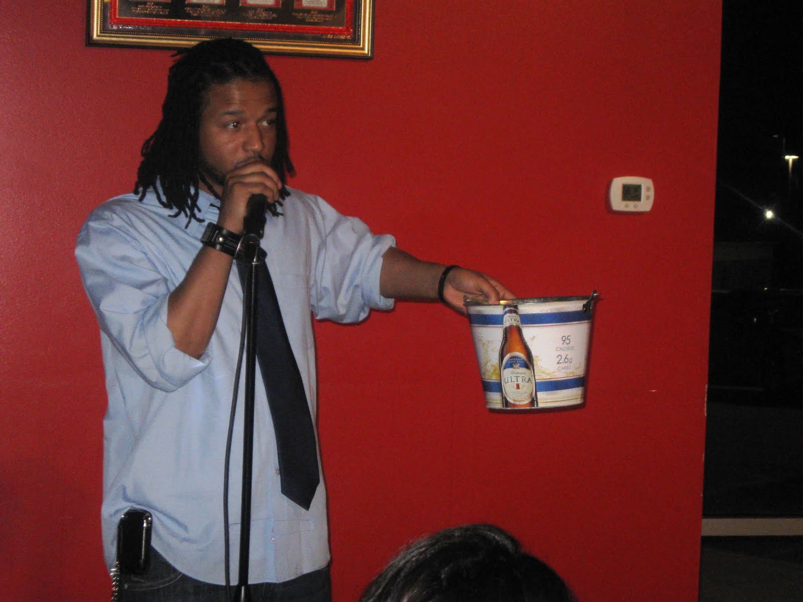 Xplicit passing the bucket for the crowd to pitch in a few dollaz for the featured poet who was: